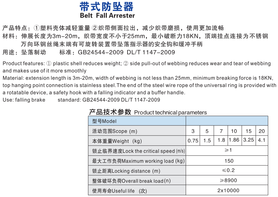 Durable belt fall arrester designed for personal fall protection, suitable for various industrial applications.