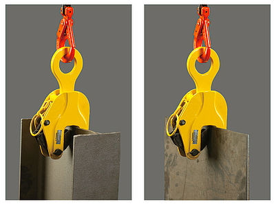 Standard design clamp for vertical lifting of steel plates and steel structures.