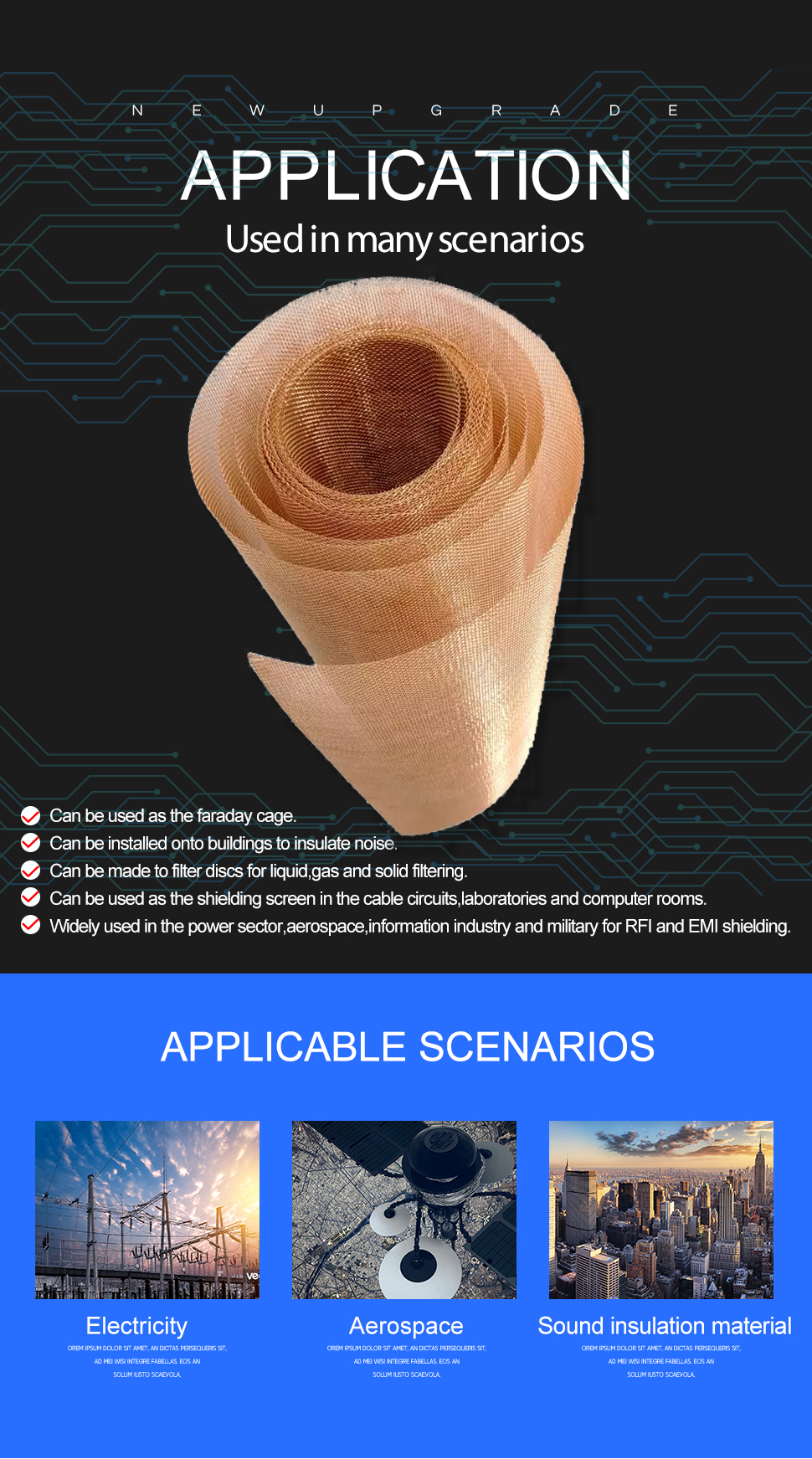 Application:Used in electromagnetic shielding, screening of various granular