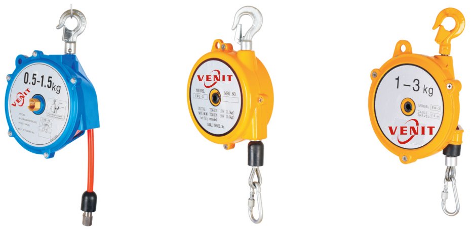 Light weight and durable spring balancer designed for ergonomic handling of small tools in assembly lines.