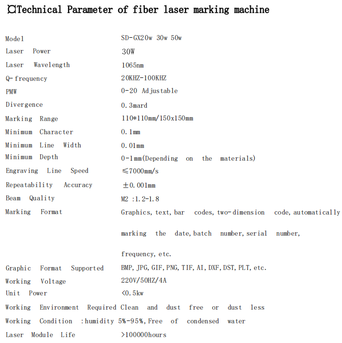 The fiber laser, vibration morror,Garvo head,laser control card are the main parts of the machine. Reci series fiber laser marking machine adopts high quality parts.