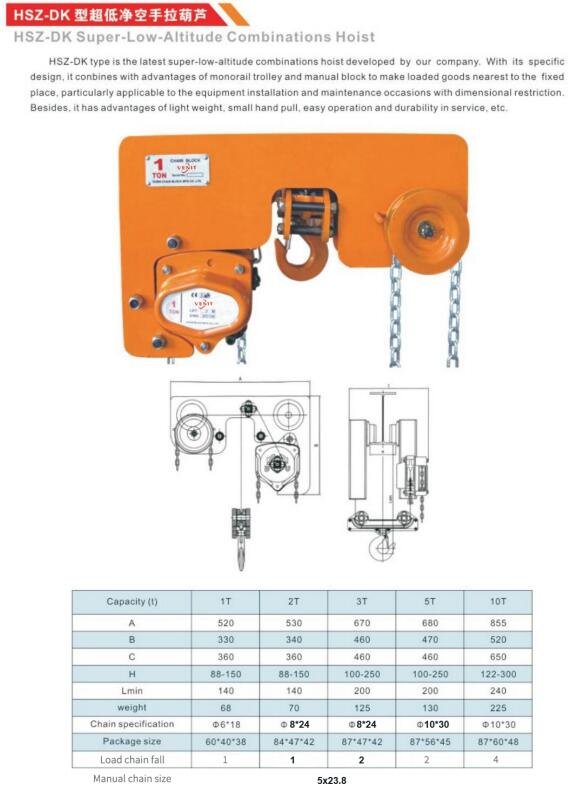HSZ-DK Super-Low-Altitude Combinations Hoist