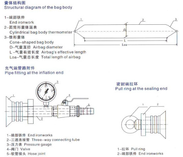 The whole-wrapped marine airbag is composed of two parts: a mouth and a body (conical and cylindrical). The bladder nozzle is made of Q235 hot-dip galvanizing, which has good seawater corrosion resistance. The tapered balloon wraps the mouth of the balloon, and forms a whole with the cylindrical balloon through a seamless winding process, which ensures the airbag's airtightness, bearing capacity and safety performance.