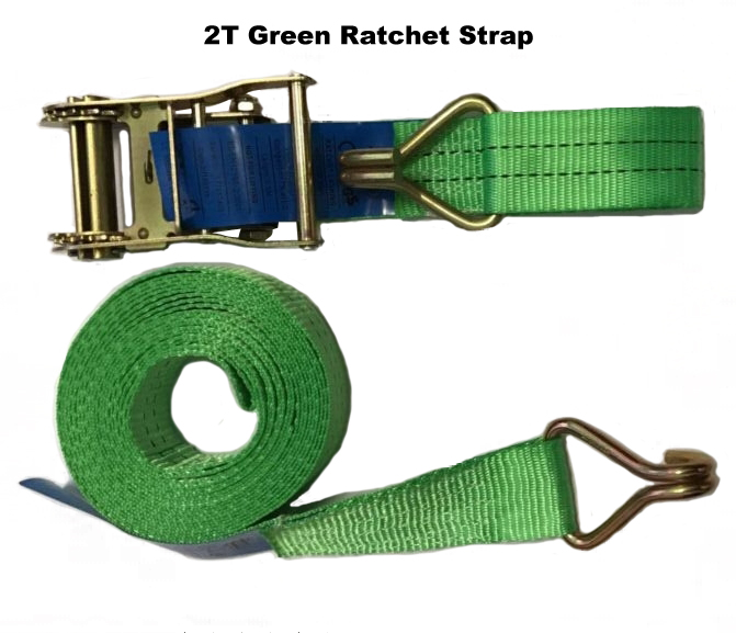 2T Iron Handle Green Ratchet Strap with Double J Hook