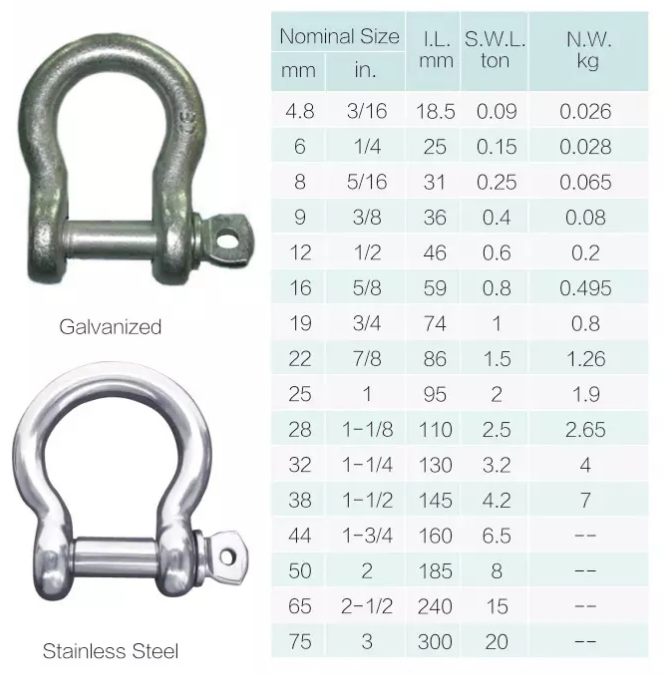 Made of high quality materials, JIS Standard Bow Shackles with special strength and corrosion resistance can withstand heavy loads.