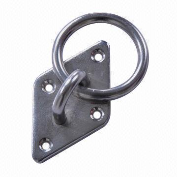 Stainless steel diamond pad eye with ring—strong, corrosion-resistant, polished. Ideal for securing ropes, cables, lifelines on decks and boats.