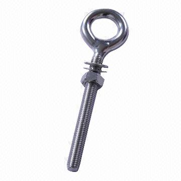 Stainless steel long type welded eye bolt with washer and nut. Extra strength, corrosion resistant, ideal for lifting and marine use.