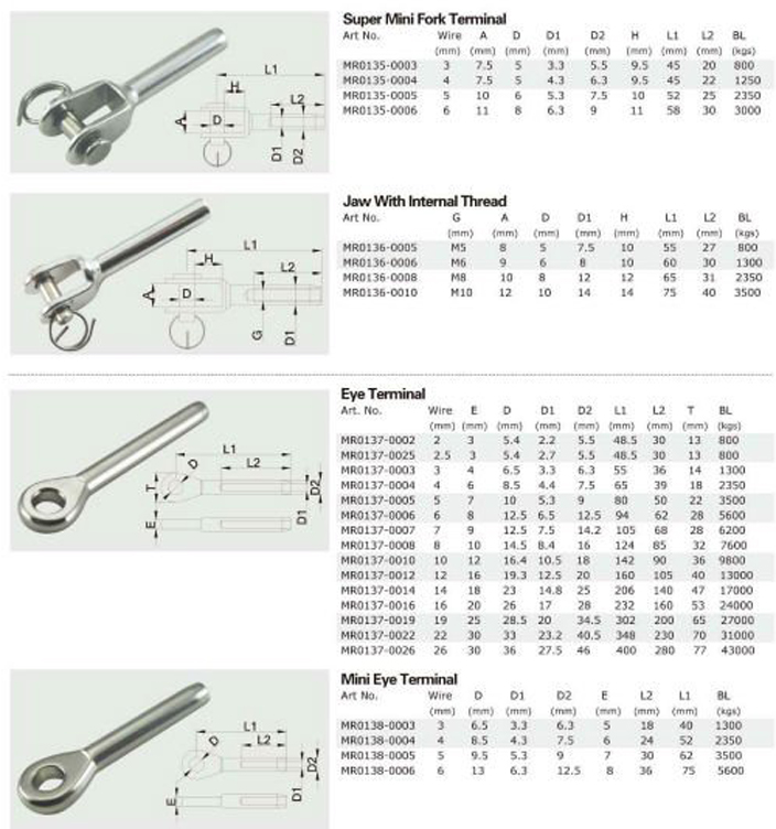 Secure and durable stainless steel swage terminal fittings for marine and industrial rigging applications.