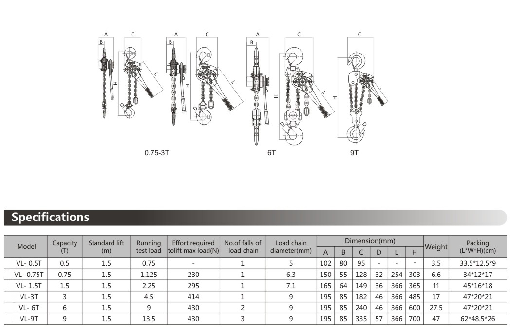 VL Type Manual Lever Block offers versatile lifting solutions with a lightweight design. Ideal for various industrial applications requiring portability.