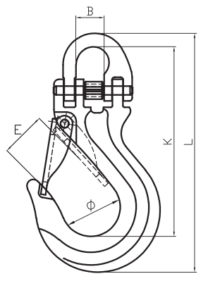 | ITEM NO. | WEIGHT/KG | WLL/T | B.L/T | E±2 | B±1 | Φ±1.5 | K±3 | L±3 |