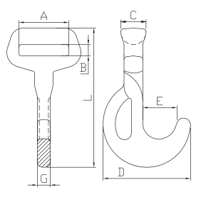 | ITEM NO. | WEIGHT/KG | WLL/T | B.L/T | A±1 | B±1 | D±2 | E±1 | G±1 | L±2 |