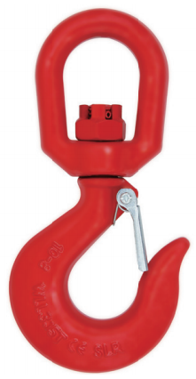 Safety‑latch G80 swivel hook VNT040, forged alloy steel design, compliant with EN 1677, maximized operational safety and high WLL for heavy‑duty crane chain lifting.