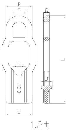 | ITEM NO. | WEIGHT/kg | WLL/T | B.L/T | A±1.5 | B±1 | C±1 | D±3 | E±1 | F±3 | L±3 |
