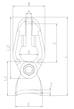 | ITEM NO. | WEIGHT/kg | WLL/T | B.L/T | A±0.5 | B±0.5 | C±1 | D±1 | E | F | L1±2.5 | L2±1.5 | L±3.5 |