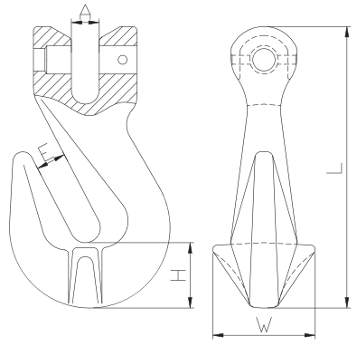 The G80 clevis shortening cradle grab hook with wings is built for chain shortening applications, ensuring secure and safe load handling.