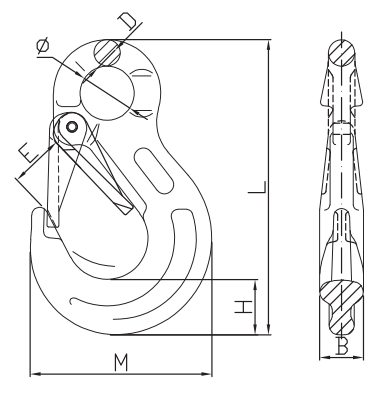 | Item No. | Weight/kg | WLL/T | B.L/T | B±1 | D±1 | E±2 | H±1 | Φ±1 | M±2 | L±2.5 |
