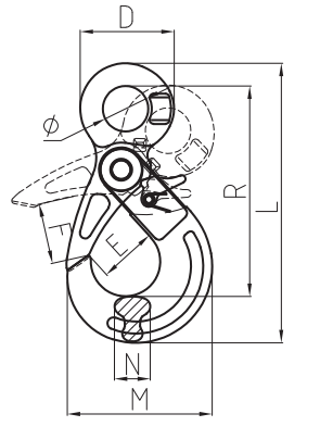 | Item No. | Weight/kg | WLL/T | B.L/T | Φ | D±1 | E±1 | F±1 | R±2 | M±2 | N±1 | L±3 |