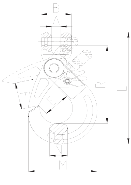 | Item No. | Weight/kg | WLL/T | B.L/T | A±0.5 | B±1 | E±1 | F±1 | R±2 | M±2 | N±1 | L±3 |