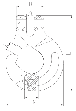 | ITEM NO. | WEIGHT/kg | WLL/T | B.L/T | B±1.2 | A±0.5 | E±0.5 | H±1 | M±2 | N±0.5 | L±2 |