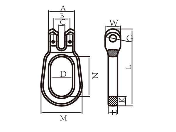 | Item No. | Weight/kg | WLL/T | B.L/T | A±1 | B±0.5 | C±1 | D±1 | M±1.5 | N±2 | H±1 | K±0.5 | L±1.5 | G±0.2 | E±1 |