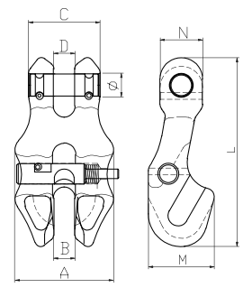 | Item No. | Weight/kg | WLL/T | B.L/T | A±0.5 | B±0.5 | C±0.5 | D±0.5 | M±0.5 | N±0.5 | Φ±0.1 | L±3 |