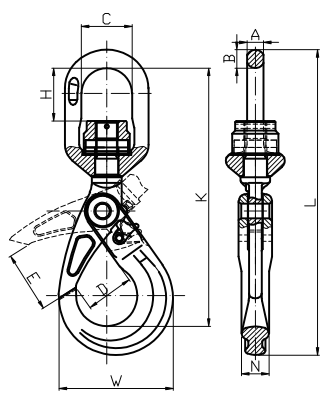 | Item No. | Weight/kg | WLL/T | B.L/T | A±1.5 | B±1.5 | C±2 | D±2 | E±2.5 | N±1 | H±3 | K±3 | L±5 | W±3 |