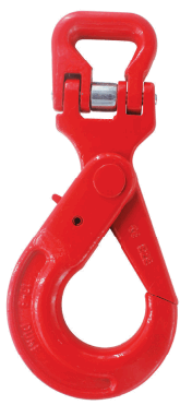 High-strength G80 self locking hook with half link, designed for web sling lifting and safety in rigging.
