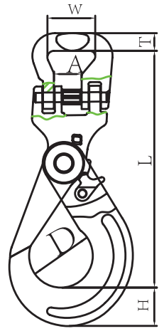 | ITEM NO. | WEIGHT/KG | WLL/T | B.L/T | A±1.5 | H±1 | W±1.5 | T±1 | D±1.5 | L±3 |
