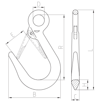 | ITEM NO. | WEIGHT/KG | WLL/LBS | B.L/LBS | D±1 | B±2 | C±1 | L±3 | R±2 | E±2 | H±2 |