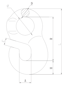 | ITEM NO. | WEIGHT/KG | WLL/T | B.L/T | A±0.5 | D±1 | H±1 | R±1.5 | E±0.5 | L±2 |