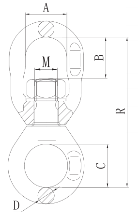 | ITEM NO. | WEIGHT/KG | WLL/T | B.L/T | A±1.2 | B±1.5 | C±1 | D±1 | M | R±2.5 |