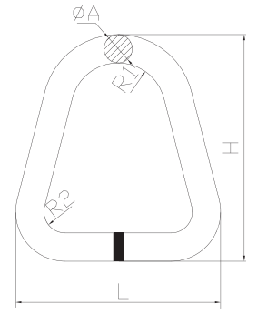 | ITEM NO. | WEIGHT/KG | WLL/T | B.L/T | A±2 | H±1.5 | L±1 | R1 | R2 |