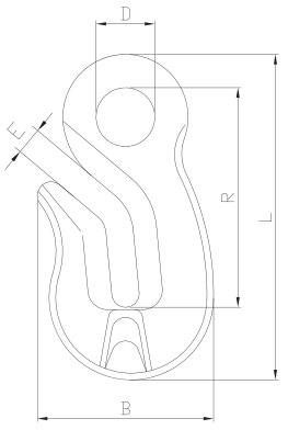 | ITEM NO. | WEIGHT/KG | WLL/T | B.L/T | D±1 | E±0.3 | B±1.2 | R±1.5 | L±1.5 |