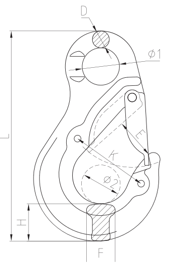 | ITEM NO. | WEIGHT/KG | WLL/T | B.L/T | Φ1±1 | Φ2±1 | D±1 | E±1.5 | F±1 | H±1 | K±1 | L±2 |
