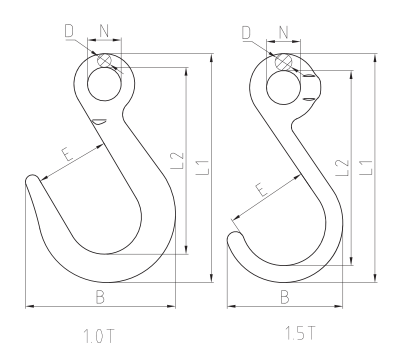 | ITEM NO. | WEIGHT/kg | WLL/T | B.L/T | D±1 | N±2 | E±2 | B±2 | L1±3 | L2±3 |