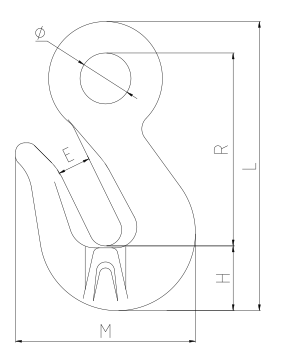 | ITEM NO. | WEIGHT/KG | WLL/T | B.L/T | Φ±2 | E±2 | M±2 | H±3 | R±3 | L±3 |