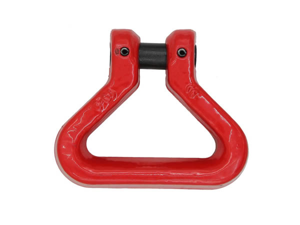 G80 clevis link made from alloy steel for webbing sling connections, fatigue tested to ensure safety in lifting and rigging operations.