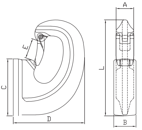 | Item No. | Weight/kg | WLL/T | B.L/T | A±1.5 | B±1 | C±1 | D±1 | E±1 | L±3 |