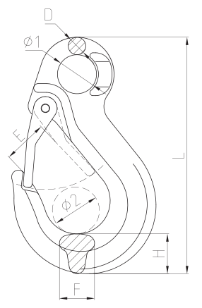 | ITEM NO. | WEIGHT/KG | WLL/T | B.L/T | Φ1±1 | Φ2±1 | D±1 | E±1.5 | F±1 | H±1 | L±3 |