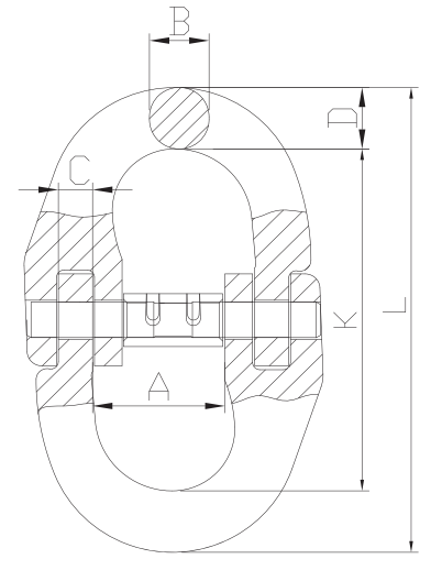 | Item No. | Weight/kg | WLL/T | B.L/T | A±1.5 | B±1 | C±0.5 | L±2 | K±2 | D±1 |