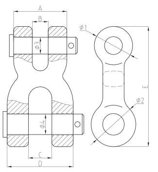 | ITEM NO. | WEIGHT/kg | WLL(T) | B.L/T | A±1.5 | B±1 | C±1 | D±1.5 | E±2 | Φ1 | Φ2 | Φ3 | Φ4 |