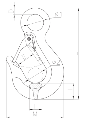 | ITEM NO. | WEIGHT/KG | WLL/T | B.L/T | Φ1±1 | Φ2±1 | D±1 | E±1.5 | F±1 | H±1 | L±2 | M±2 |