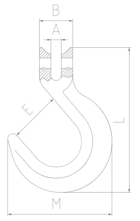 | ITEM NO. | WEIGHT/kg | WLL/T | B.L/T | A±1 | B±1 | E±1.5 | M±1.5 | L±3 |