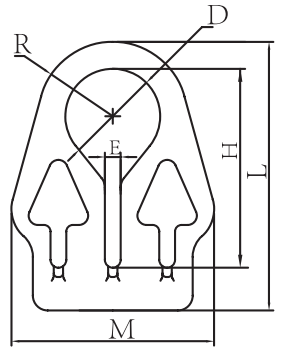 | Item No. | Weight/kg | WLL/LBS | B.L/LBS | E | D | R | H | M | L |