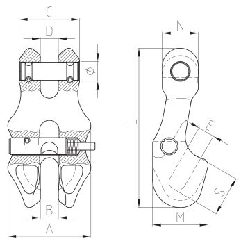 | Item No. | Weight/kg | WLL/T | B.L/T | A±2 | B±0.5 | C±1 | D±0.5 | E±0.3 | Φ±0.3 | L±3 | M±0.5 | N±0.5 | S±0.3 |
