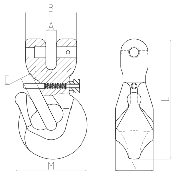 | ITEM NO. | WEIGHT/KG | WLL/T | B.L/T | A±2 | B±2 | E±2 | M±3 | N±3 | L±3 |