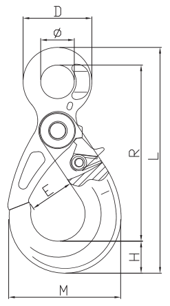 | Item No. | Weight/kg | WLL/T | BL/T | Φ | D±1 | E±1 | H±1 | R±2 | M±2 | L±3 |