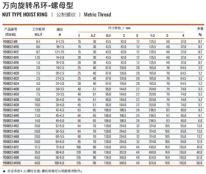 YD0832 Nut Type Universal Hoist Ring